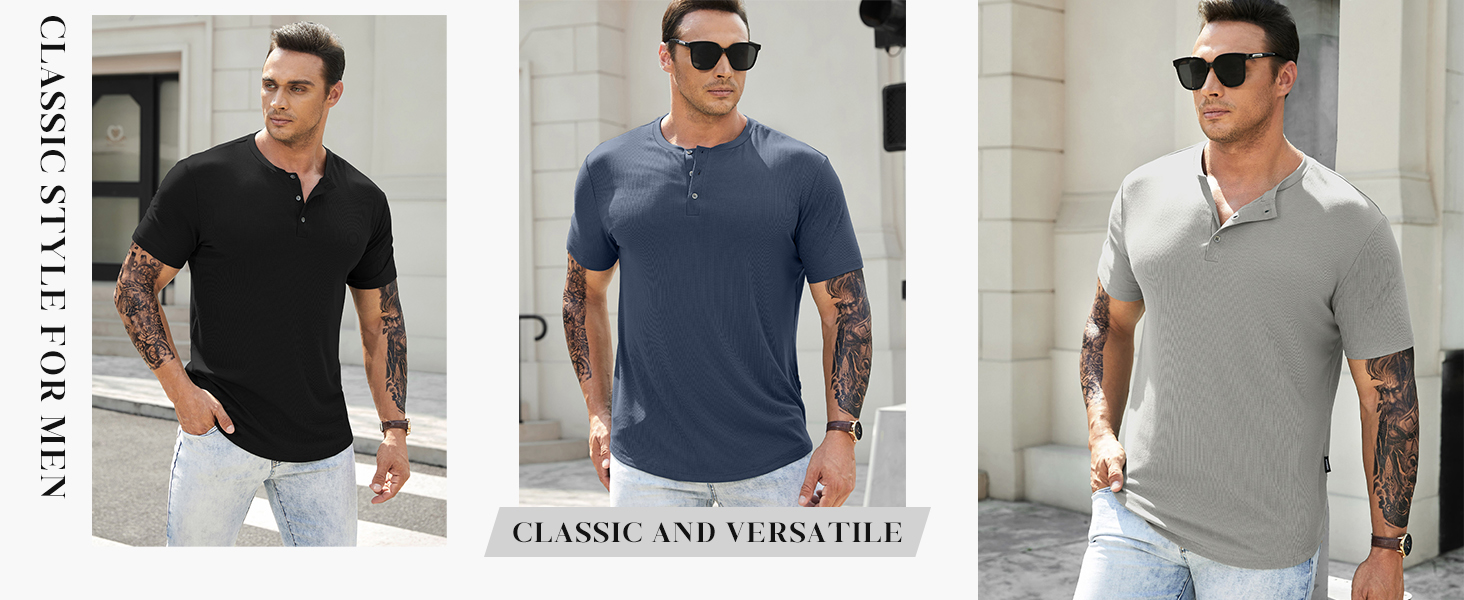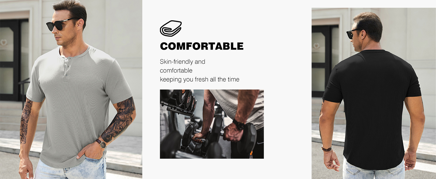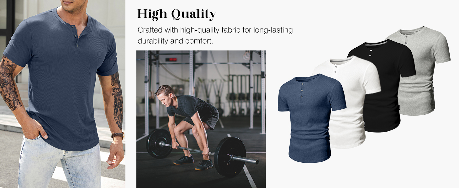 Classic Henley neckline adds casual style and easy ventilation — versatile for layering or standalone wear.